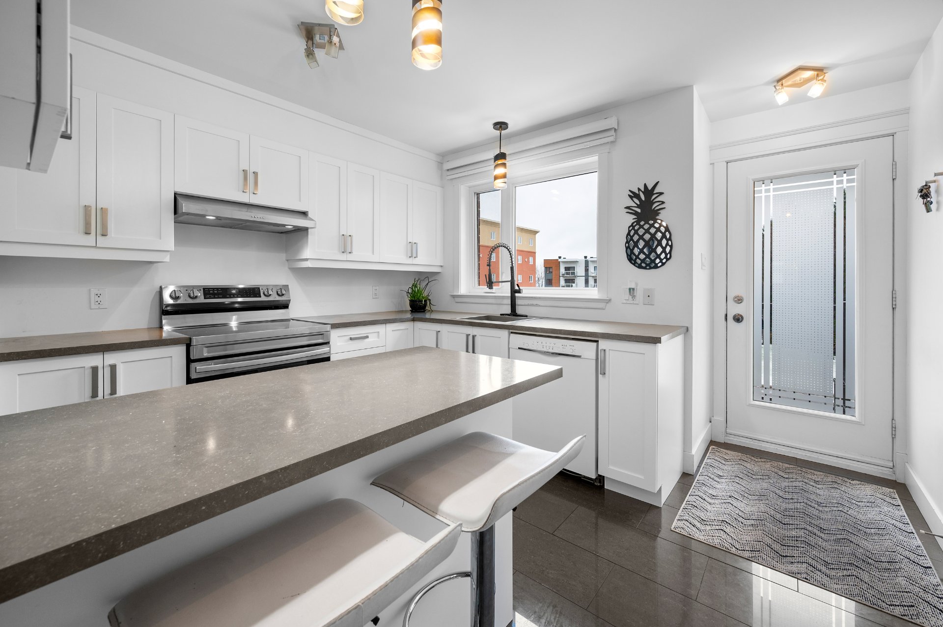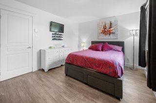 Superbe condo sur deux étages offrant 2 chambres, une excellente luminosité et de belles divisions bien pensées. Situé près de tous les services : écoles, parcs, transport en commun et épiceries. Vous profiterez d'un grand balcon, d'une remise et d'un espace de stationnement. Construction 2013, comprenant 1 salle de bain complète et une salle d'eau. Chiens et BBQ acceptés. Bonne gestion. Disponible dès le 13 mars prochain.